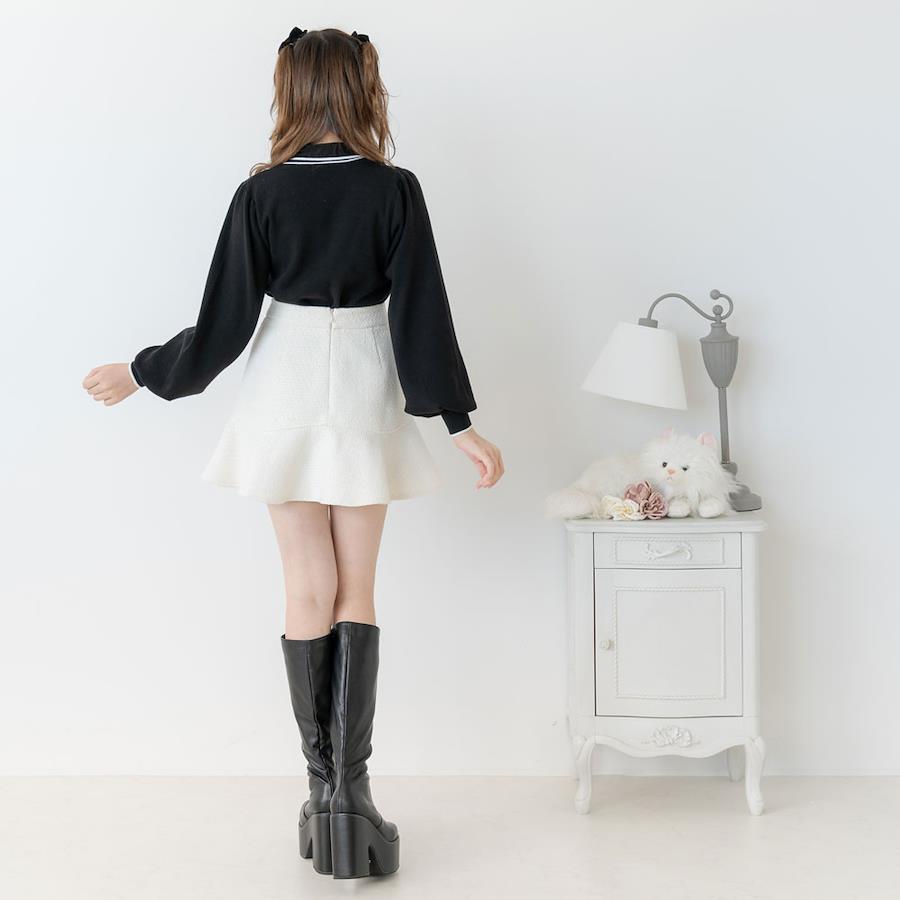 【コーディネート】同素材のツイードショートジャケット(534003)と合わせると、セットアップ風にも着て頂けます。シンプルなボウタイや丸襟のブラウスを合わせたり、Roseのビジューニット等を合わせればシーズンムード高まるコーデに♪上品可愛い量産型コーデにもぴったりで、1枚で幅広い着回しが出来る万能アイテムです!《透け感》なし 《生地の厚さ》普通 《裏地》あり 《伸縮性》なし《生産国》中国
