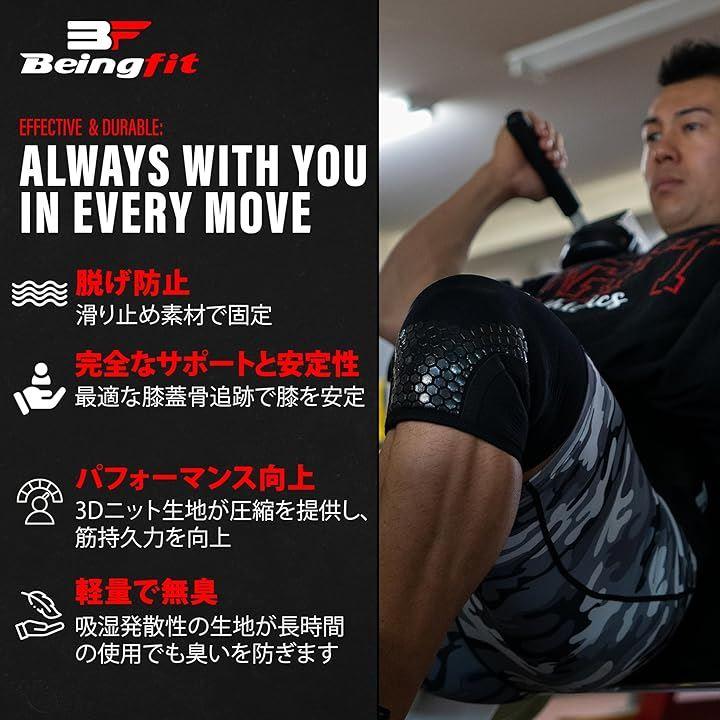 このBeingfit ニースリーブは、筋トレ愛好家のために特別に設計されています。