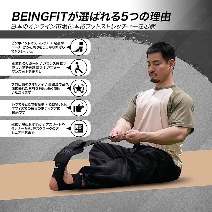 Being fitの足・脚ストレッチャーは、足底のケアやトレーニング前後のコンディショニングに最適なプロ仕様のストレッチツールです。
