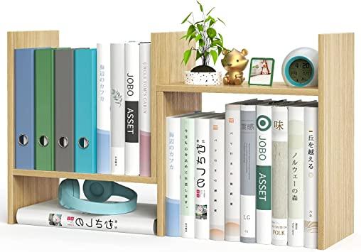 通常1-5営業日で発送:BESONT デスク上置き棚 伸縮型本立て 卓上収納 木製 多種組み立て方式 (くるみ色)色: くるみ色