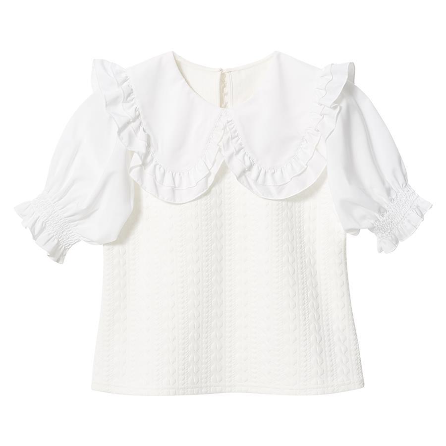 大きめフリル襟が可愛いドッキングトップスのご紹介。