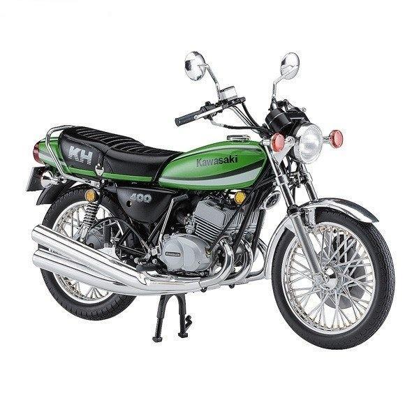 ハセガワ 1/12 カワサキ KH400-A7 プラモデル BK6 カワサキKHは、マッハシリーズから受け継ぐ独特の2ストローク3気筒エンジンを搭載。「ケッチ」の愛称で親しまれ、現在でも根強い人気があるオンロードバイクです。1979年11月にカワサキライムグリーンのレーシングカラーでリリースされた排気量400ccの最終モデル「KH400-A7」を、徹底した実車取材により完全新金型でキット化。【デカール】・ボディサイドのライン・「Kawasaki」「KH」マーク 他パーツの色分けとメッキパーツで塗装しなくても実車に近いイメージを再現【パーツカラー】グリーン:タンク ・ シートモール 他ブラック:フレーム ・ シート 他ライトグレー:エンジン 他クリアー:ヘッドライト 他【メッキパーツ】・フロントフェンダー・ホイール・マフラー・サスペンション・ミラー 他全長:165.5mm×全高:109mm(1/12スケール)※組み立て・塗装の必要なプラモデルです。
