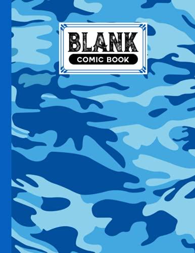 Blank Comic Book: Camouflage Blue Cover, Create Your Own Story, Journal, Notebook, Sketchbook for Kids and Adults, 120 P