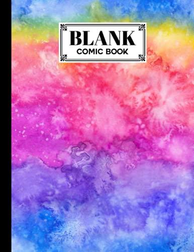 Blank Comic Book: Premium Rainbow Watercolor Cover Blank Comic Book, Create Your Own Story, Journal, Notebook, Sketchboo