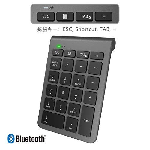 【機能が追加されたキーパッド】このブルートゥーステンキーボードは一般のキーパッドに比べて、NumLockキー、ESCキー、Tabキーが付け加えられるうえに、コンピュータの電卓機能を直接起動するショットカットキーも付いています。ナンバーボードを備えていない小型ラップトップをお持ちの方にオススメの商品です。