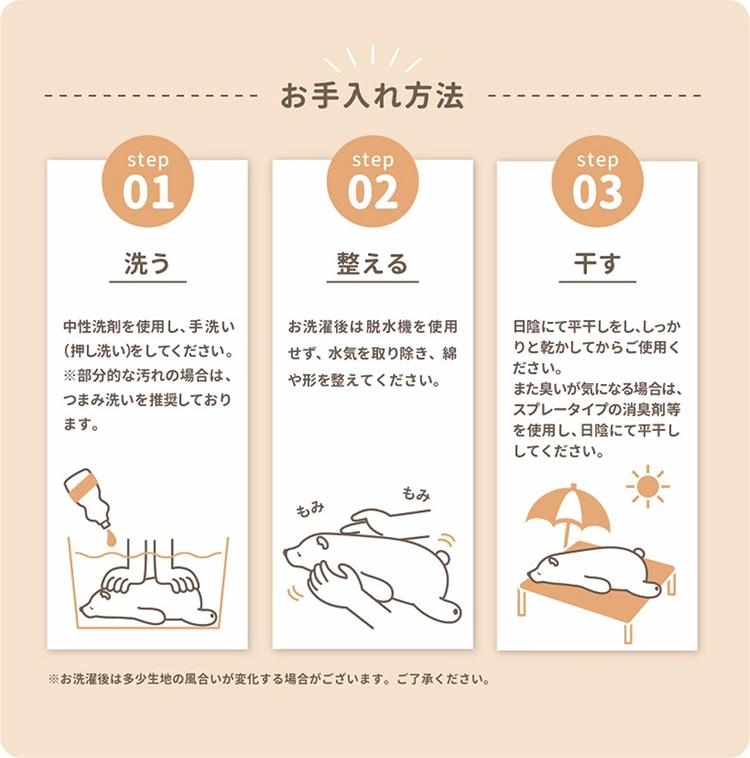 ■サイズ【犬】ゴールデン[ソラ] :長さ74×幅35×高さ17cmプードル[ショコラ]: 長さ70×幅32×高さ15cmパグ[ハナ] :長さ67×幅28×高さ16cmビーグル[ビッキー] :長さ70×幅32×高さ20cmチワワ[ココア] :長さ71×幅35×高さ17cm柴犬[コタロウ] :長さ73×幅32×高さ18cmシュナウザー[ジョイ] :長さ73×幅32×高さ18cmダックスフンド[チョコ]:長さ67×幅27×高さ17cmブルドッグ[ブルル]: 長さ66×幅30×高さ16cm【猫】ミケ猫[ゆず]: 長さ69×幅28×高さ17cmスナネコ[スナコ] :長さ71×幅35×高さ17cmシャム猫[レオ]: 長さ70×幅32×高さ18cmスコティッシュ[まる]: 長さ63×幅26×高さ18cm【その他】シロクマ[ラッキー]: 長さ76×幅32×高さ20cmうさぎ[つむぎ]: 長さ63×幅26×高さ18cmたぬき[ぽんきち] :長さ73×幅32×高さ18cmカワウソ[くるり] :長さ73×幅30×高さ20cmオラウータン[ウータン] :長さ70×幅34×高さ19cmトラ[ラム] :長さ74×幅34×高さ15cmゴリラ[ボンゴ] :長さ70×幅32×高さ20cmパンダ[リンリン] :長さ70×幅40×高さ20cm