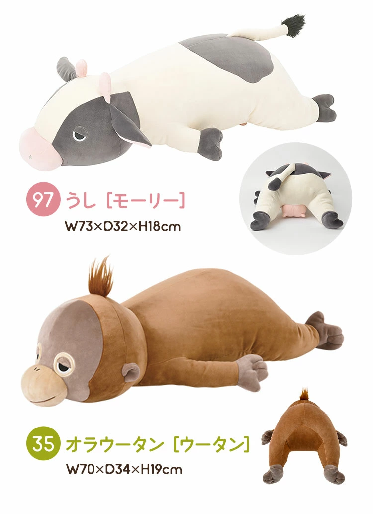 ■サイズ【犬】ゴールデン[ソラ] :長さ74×幅35×高さ17cmプードル[ショコラ]: 長さ70×幅32×高さ15cmパグ[ハナ] :長さ67×幅28×高さ16cmビーグル[ビッキー] :長さ70×幅32×高さ20cmチワワ[ココア] :長さ71×幅35×高さ17cm柴犬[コタロウ] :長さ73×幅32×高さ18cmシュナウザー[ジョイ] :長さ73×幅32×高さ18cmダックスフンド[チョコ]:長さ67×幅27×高さ17cmブルドッグ[ブルル]: 長さ66×幅30×高さ16cm【猫】ミケ猫[ゆず]: 長さ69×幅28×高さ17cmスナネコ[スナコ] :長さ71×幅35×高さ17cmシャム猫[レオ]: 長さ70×幅32×高さ18cmスコティッシュ[まる]: 長さ63×幅26×高さ18cm【その他】シロクマ[ラッキー]: 長さ76×幅32×高さ20cmうさぎ[つむぎ]: 長さ63×幅26×高さ18cmたぬき[ぽんきち] :長さ73×幅32×高さ18cmカワウソ[くるり] :長さ73×幅30×高さ20cmオラウータン[ウータン] :長さ70×幅34×高さ19cmトラ[ラム] :長さ74×幅34×高さ15cmゴリラ[ボンゴ] :長さ70×幅32×高さ20cmパンダ[リンリン] :長さ70×幅40×高さ20cm