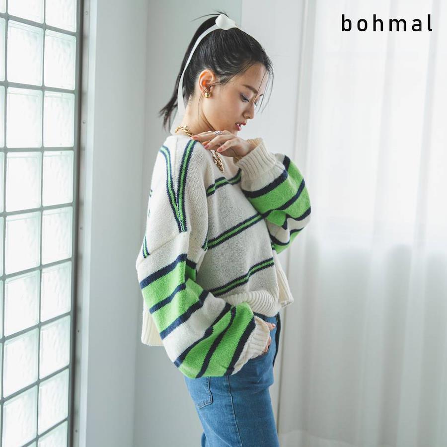 【Design】身頃部分と袖部分の太さが違うボーダーがアクセントになり、配色もbohmalならではカラーリング。