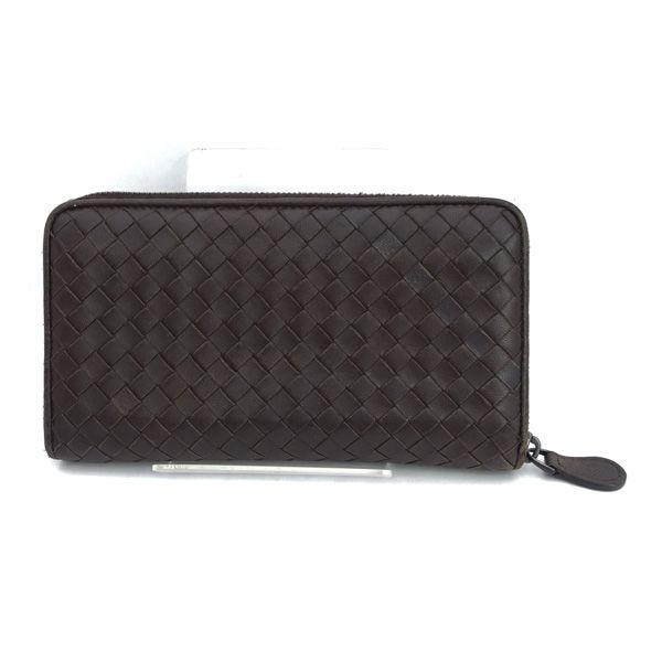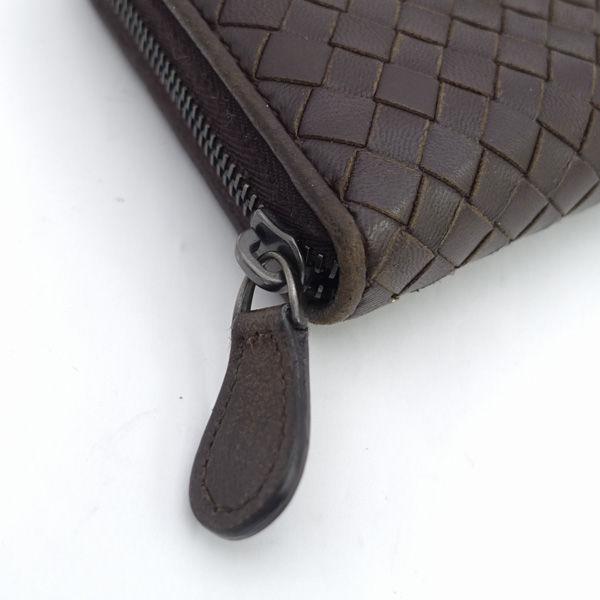 BOTTEGA VENETA / ボッテガヴェネタ ◆イントレチャート ラウンドファスナー長財布 ブラウン ブランド【財布/サイフ/ウォレット/wallet/コイン】 【中古】