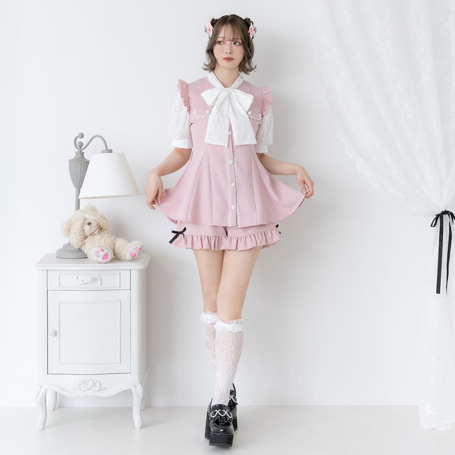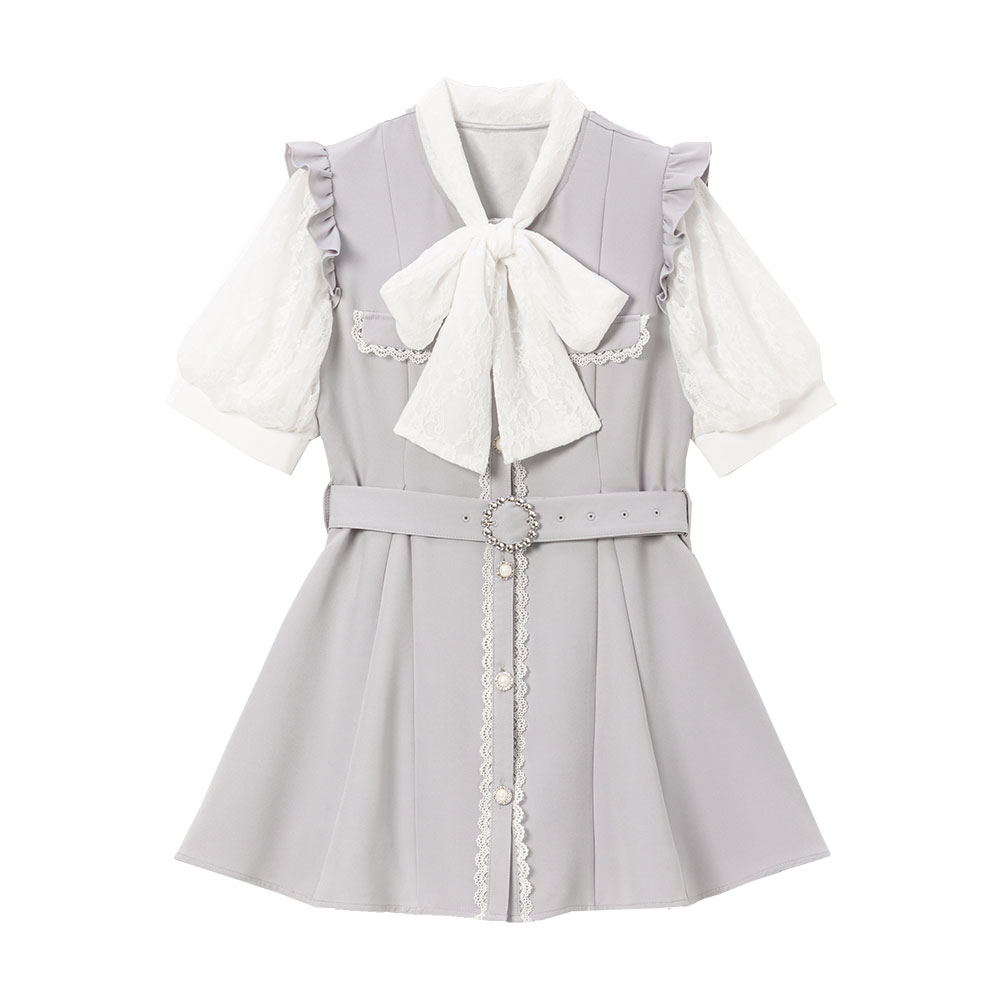 レースボウタイリボンデザインに袖のレースデザインがかわいいワンピース