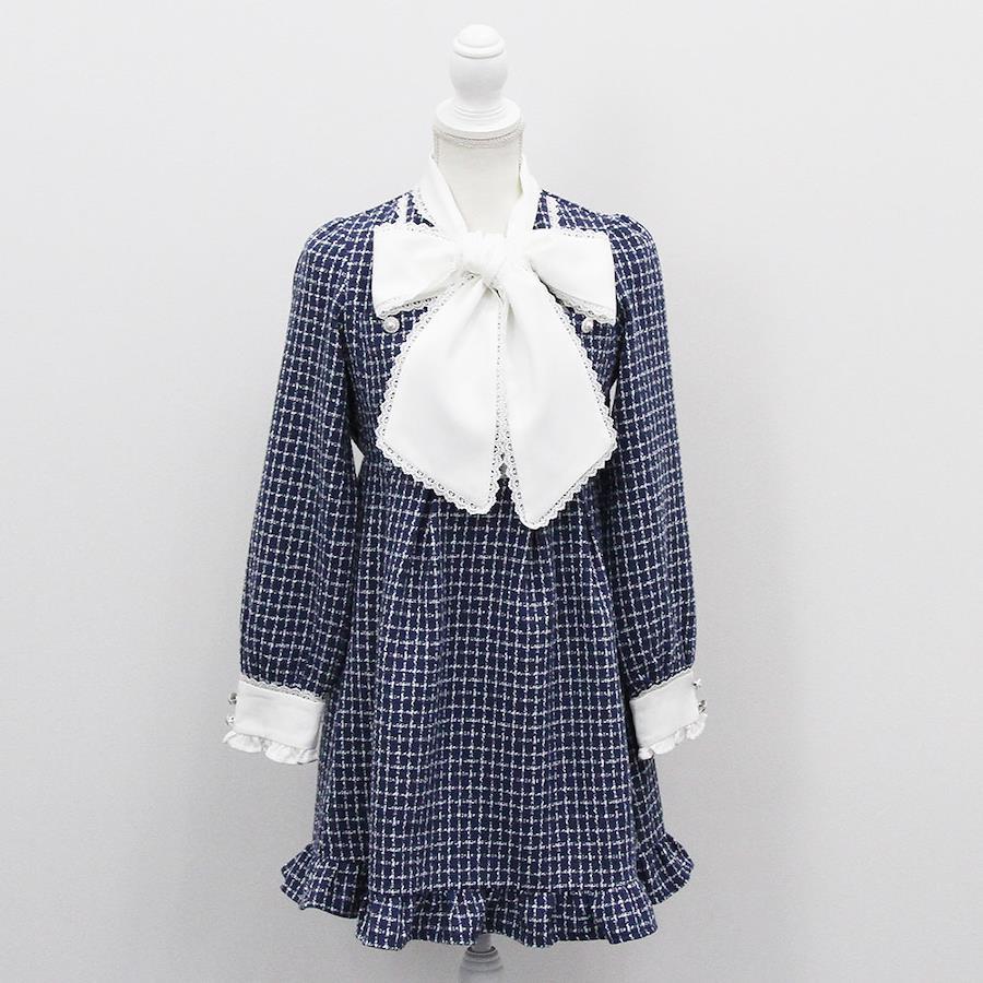 大きいボウタイがポイントのツイードフレアワンピースのご紹介♪