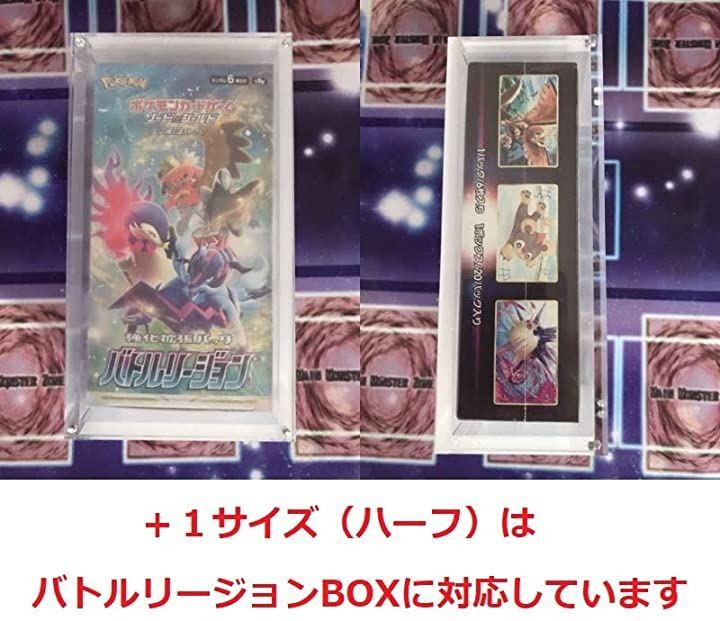 ハーフBOX(通常サイズ)は遊戯王・ポケカのハーフサイズのボックスを収納できますが、バトルリージョン(1パック6枚・20パック入り)のようなやや大きいサイズは収納できませんでした。