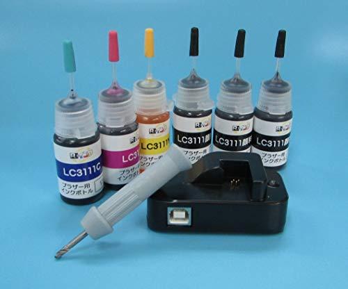 ブラザーLC3111用詰め替えインク4色セットです。(使用済み純正品対応の詰め替えインクです。互換カートリッジには対応しておりません。)残量表示を満タンに戻るリセッターが付属されております。(※電源供給の為、別途USBケーブル(A-Bタイプ)が必要です。) とても簡単に詰め替えができます。インク代コスト削減されたい方には大変お得になっております。また初心者の方でも安心して詰め替えが出来ます。インクボトル6本(顔料BK10ml 3本/C・M・Y15ml各1本)、リセッター、ポケットドリル、注入口栓4個、手袋