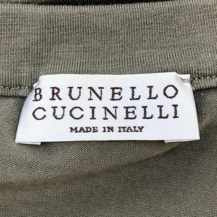 【管理番号】 015785w【ブランド名】ブルネロクチネリ【商品名】【アイテム】Tシャツ カットソー Mサイズ【型番】【サイズ】 M 平置採寸(肩幅:約35.5cm・身幅:約44cm・袖丈:約17.5cm・着丈:約66cm)【色・柄】 カーキ【素材】 本体:綿93%ポリウレタン7% 部分:絹96%ポリウレタン4%【外観ランク】 SAランク【商品補足説明】季節:春夏