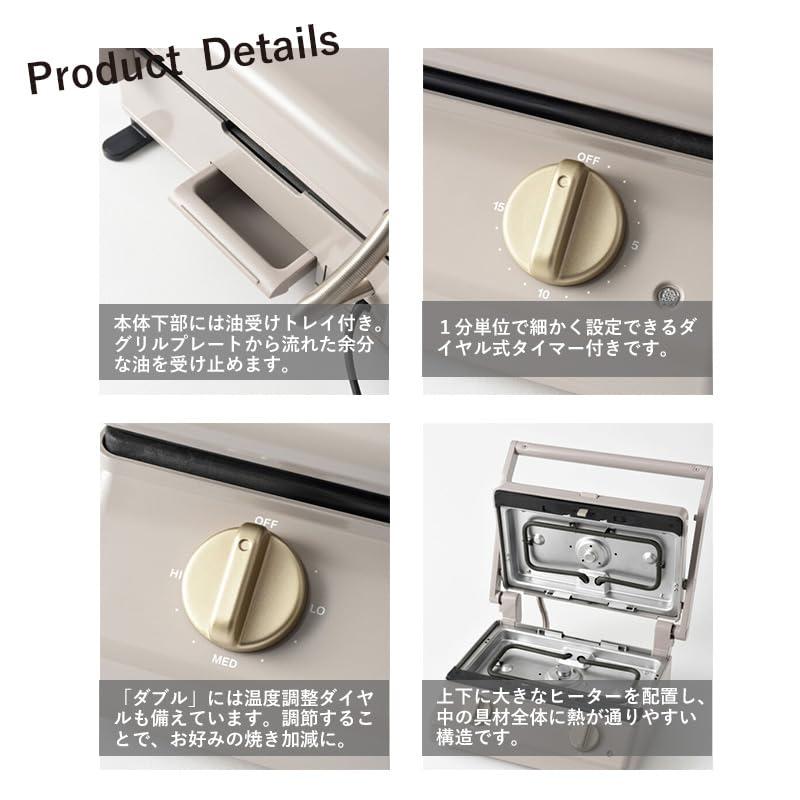 機能:定格消費電力:900W、タイマー付き、プレート取りはずし可、温度調節、油受けトレイ