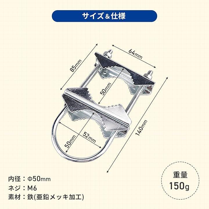 「この商品のおすすめポイント」 アンテナマストやパイプ固定金具として幅広く使えるクランプです防犯カメラの取付金具としても活躍するu字金具で屋外対応の強力固定が可能取付簡単な2個セットが魅力です。
