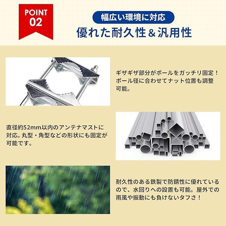 「使うと感じるうれしさ」 アンテナ取付金具を使えばパイプやポールにしっかり固定でき風や揺れにも強いので安心ですDIY感覚で簡単に設置できるのも嬉しく固定後の安定感にきっと満足できます。
