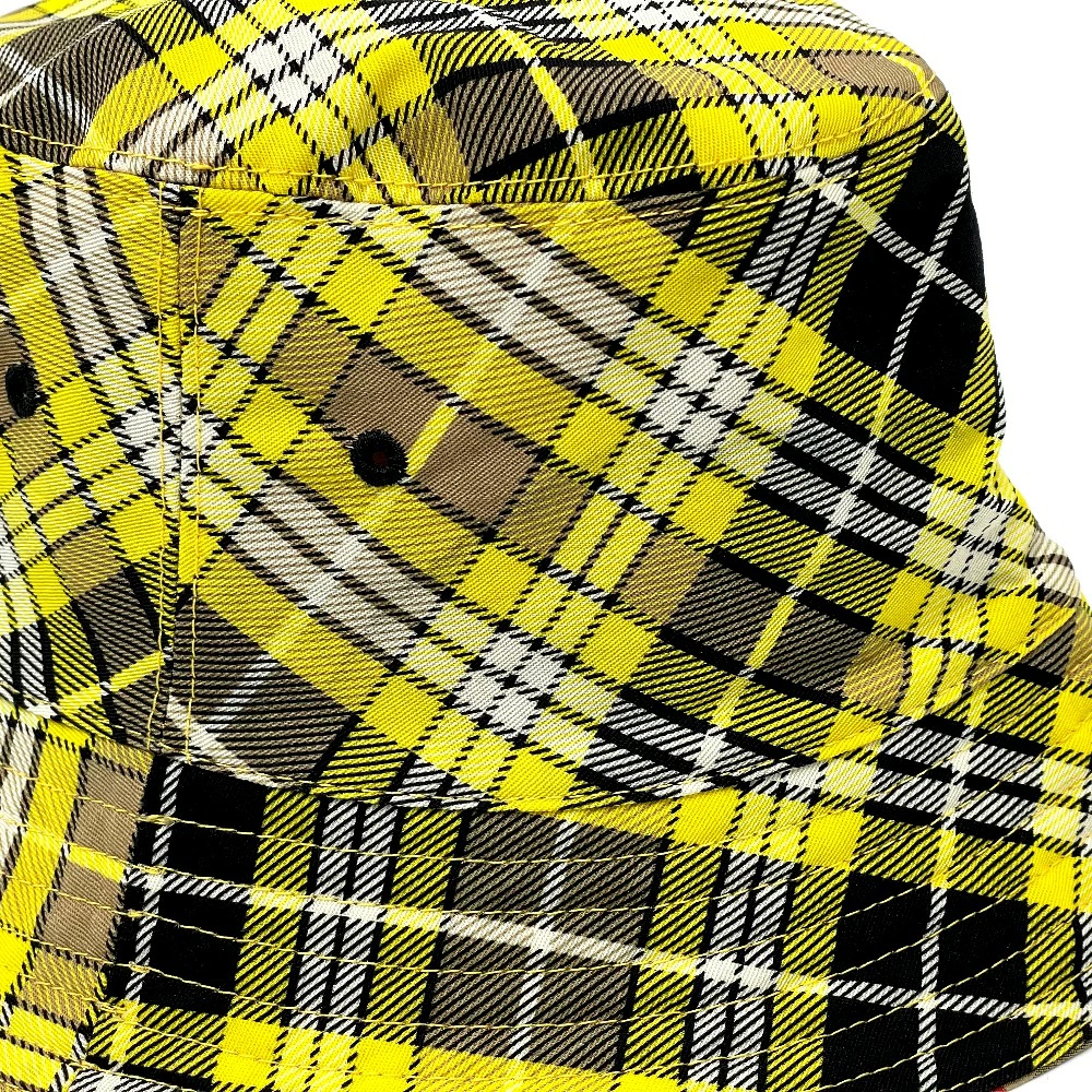 商品説明リバーシブル仕立てのバケットハット。アーカイブに残るヴィンテージチェックと春夏に映えるイエローををフィーチャーしたひと品。男女問わずお使い頂けるアイテムになります。