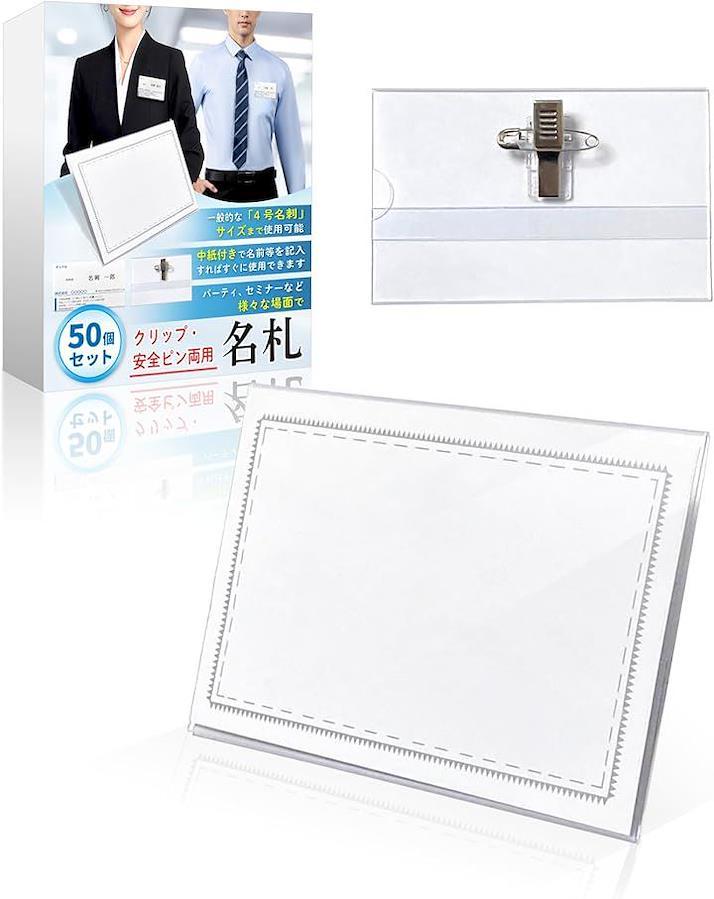 「名刺名札ケース」クリップ・安全ピン両用の名刺名札ケース。
