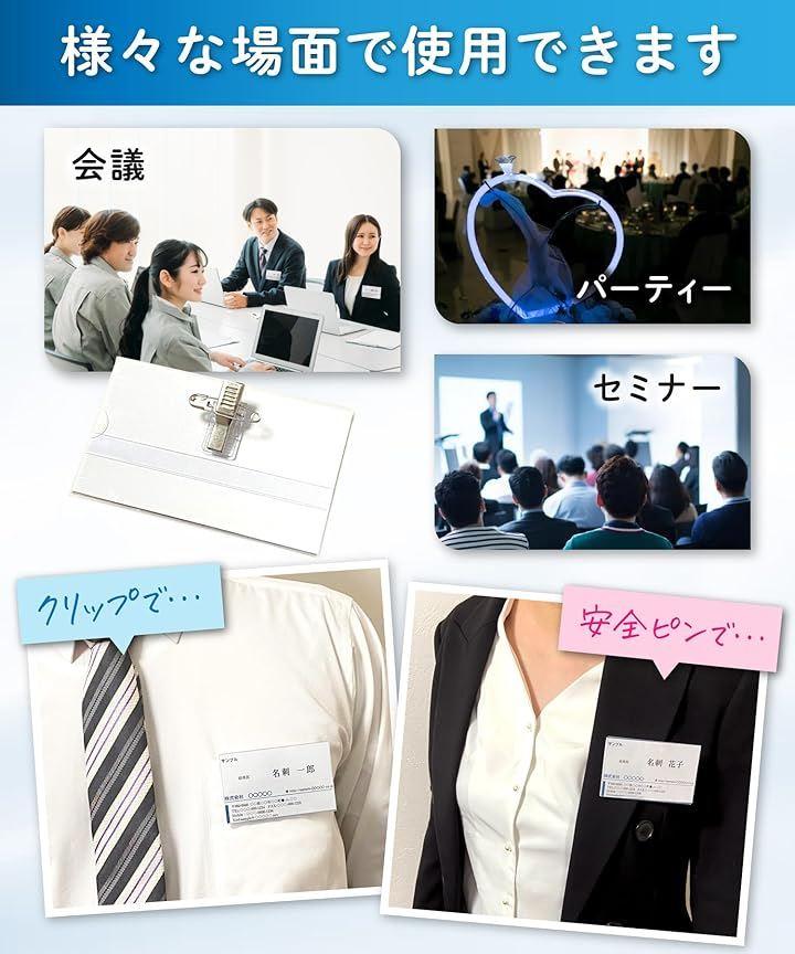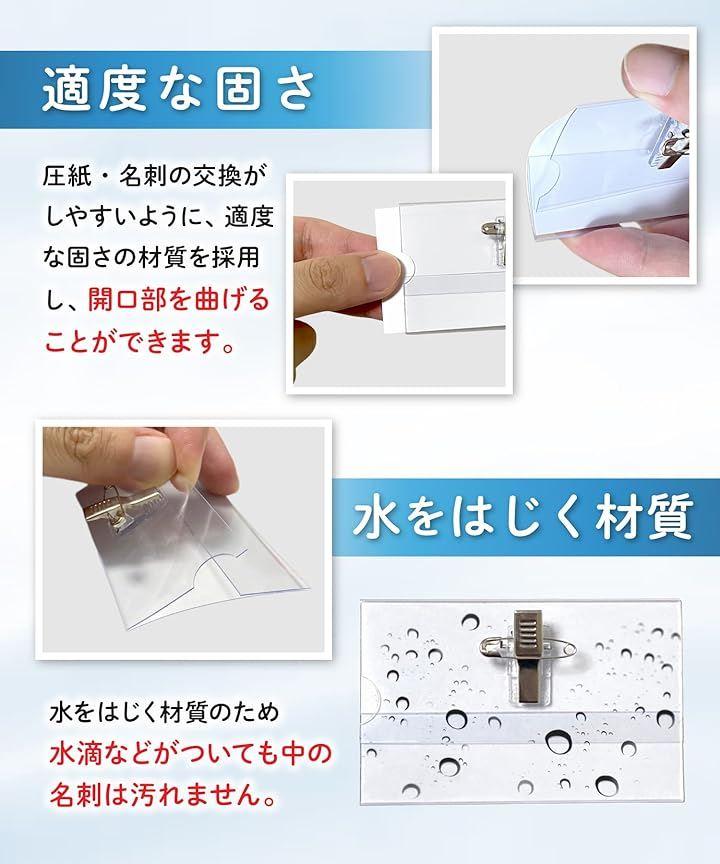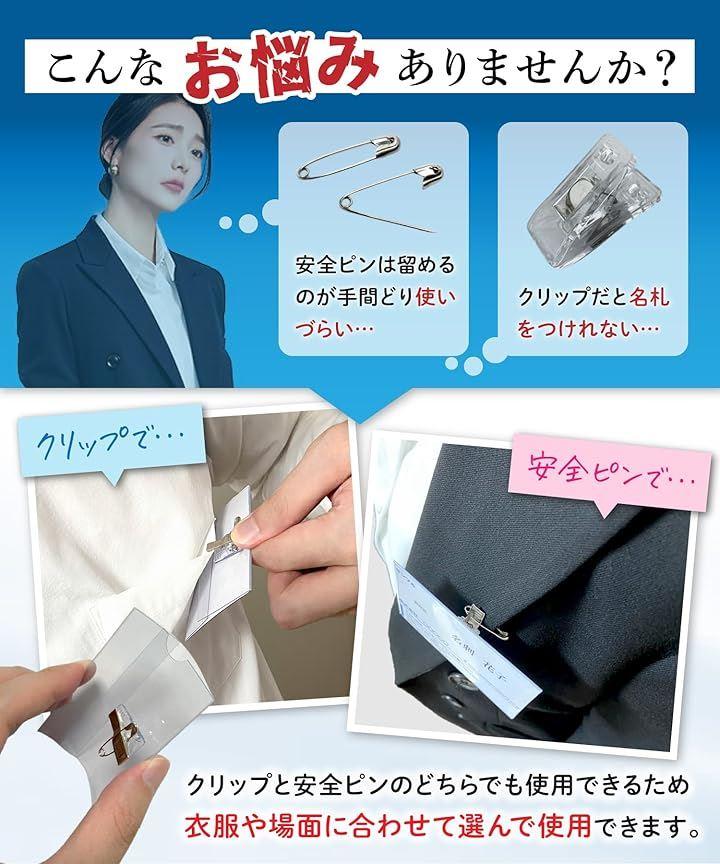 「クリップ・安全ピン両用」クリップと安全ピンのどちらでも使用できるため、衣服や場面に合わせて選んで使用できる名刺ケースとなっています。