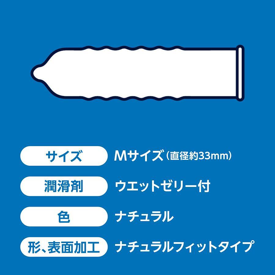 天然素材を使用。女性のお肌へのいたわりです。直径38mm*の大きめサイズです。 *製造販売元測定 ●素材/天然ゴムラテックス ●形、表面加工/ナチュラルフィットタイプ ●色/ナチュラル ●潤滑剤/ウエットゼリー付 Mサイズ JIS適合品 入数/56個 本体サイズ/長さ:約160mm、直径:約33mm 原産国/タイ ブランド
