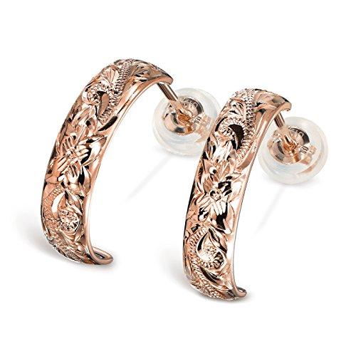 価格は両耳分です。片方のみ購入可 K14ゴールドに刻まれた繊細なスクロール柄と美しい曲線フォルムのフープピアスです。