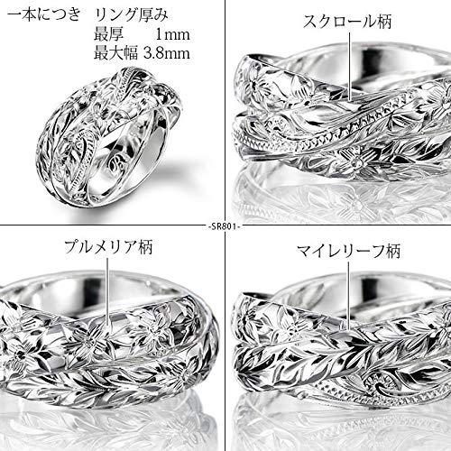 3つのリングにはそれぞれ異なる模様が施されております 「永遠の愛」を意味する波模様スクロール 「親愛」を意味する南国の花プルメリア 「絆」を意味する聖なる葉マイレリーフ