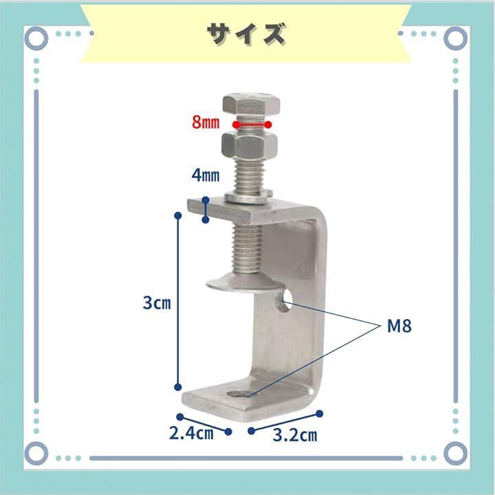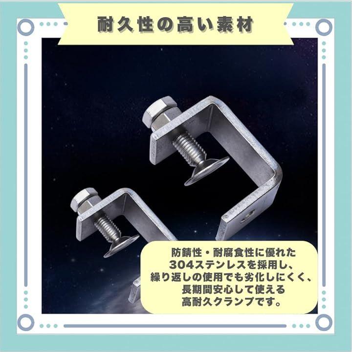 「耐久性の高い素材」防錆性・耐腐食性に優れた304ステンレスを採用し、繰り返しの使用でも劣化しにくく、長期間安心して使える高耐久クランプです。