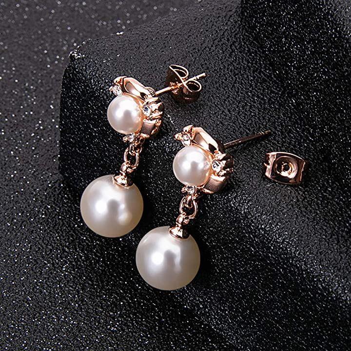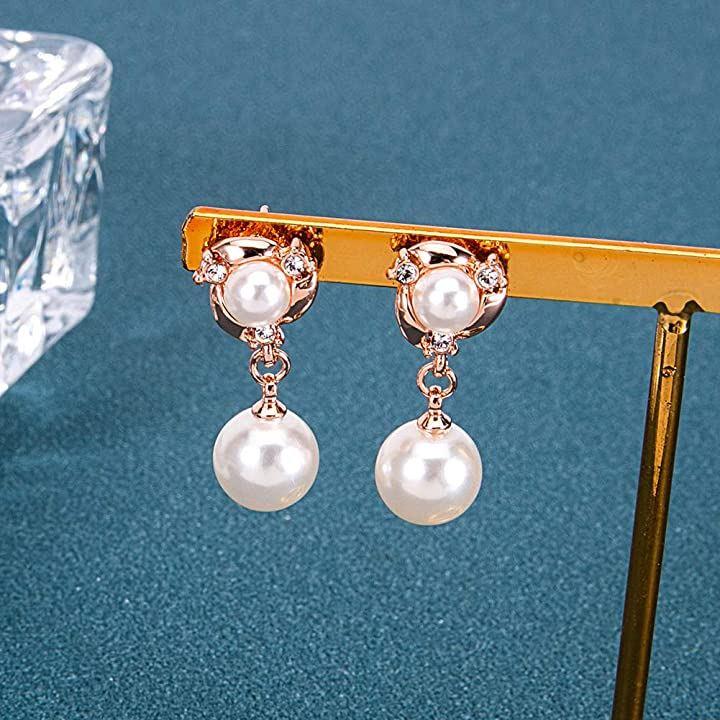 ・「サイズ」パール ピアス : 1.6x4.6cm。
