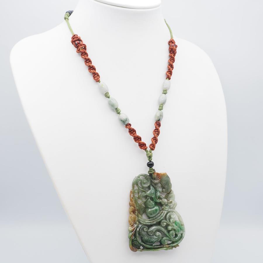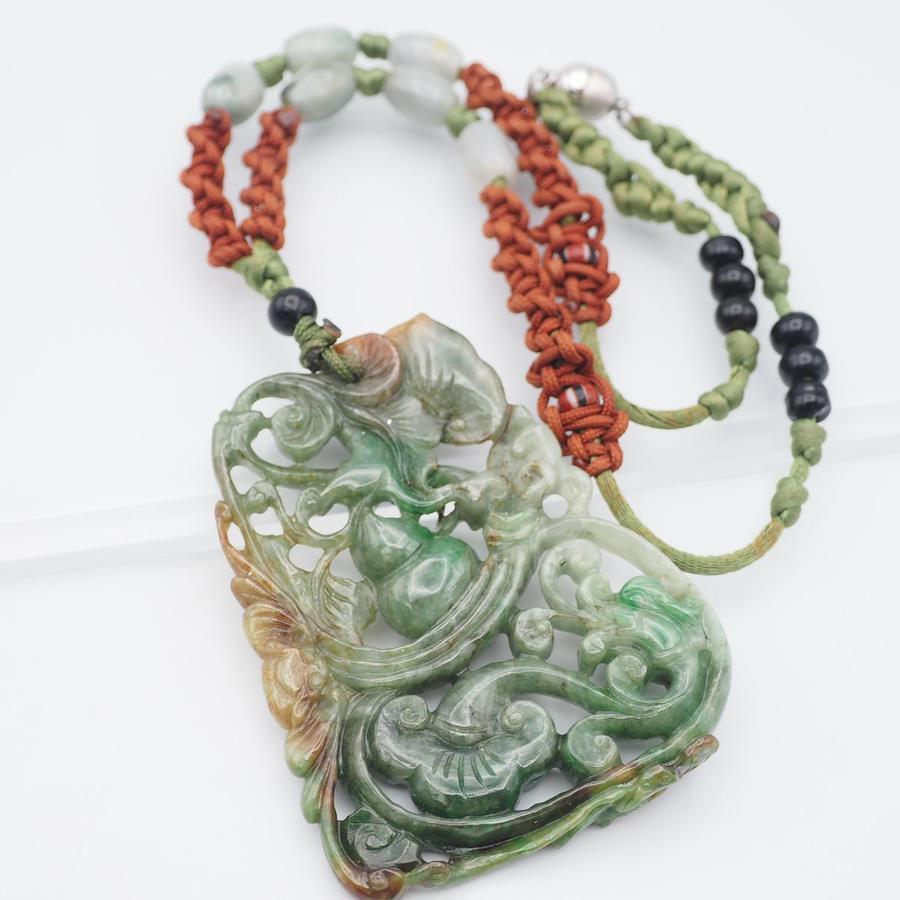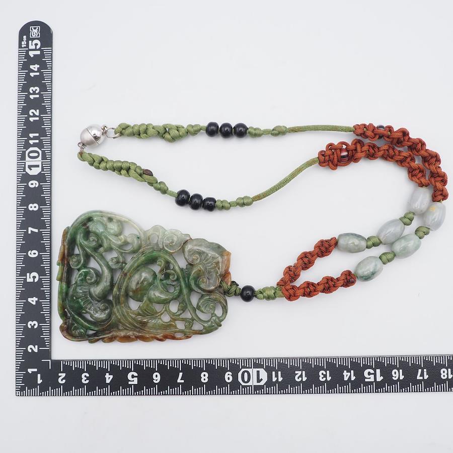 C184 特大 翡翠? ヒスイ? ペンダント ネックレス 彫刻 透かし彫り デザイン アンティーク