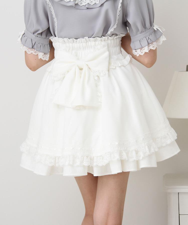 レースもたっぷり、リボンたっぷり、こんなにかわいいスカートはDearMyLoveだけ♪