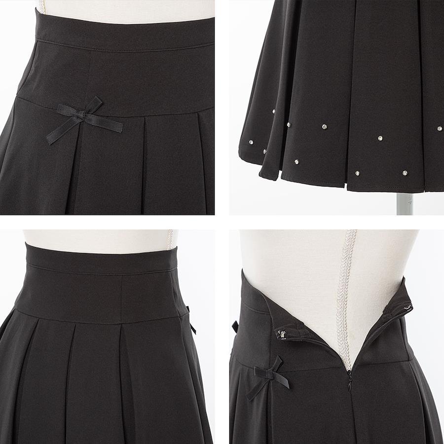 裾に施されたラインストーンが動くたびにキラキラし、トップスをインしてもアウトしても可愛くキマる一軍スカート。ラインストーンは貼り付けではなく打ち込みタイプなので、取れる心配もなく安心してご着用いただけます。シンプルながら所々にデザインポイントを施し、スタイリングのしやすさとデザイン性を兼ね備えた優秀アイテムです!ガーリーコーデにはもちろん、カジュアルなスタイリングにもおすすめです。季節問わずお使いいただけるマストバイアイテム!