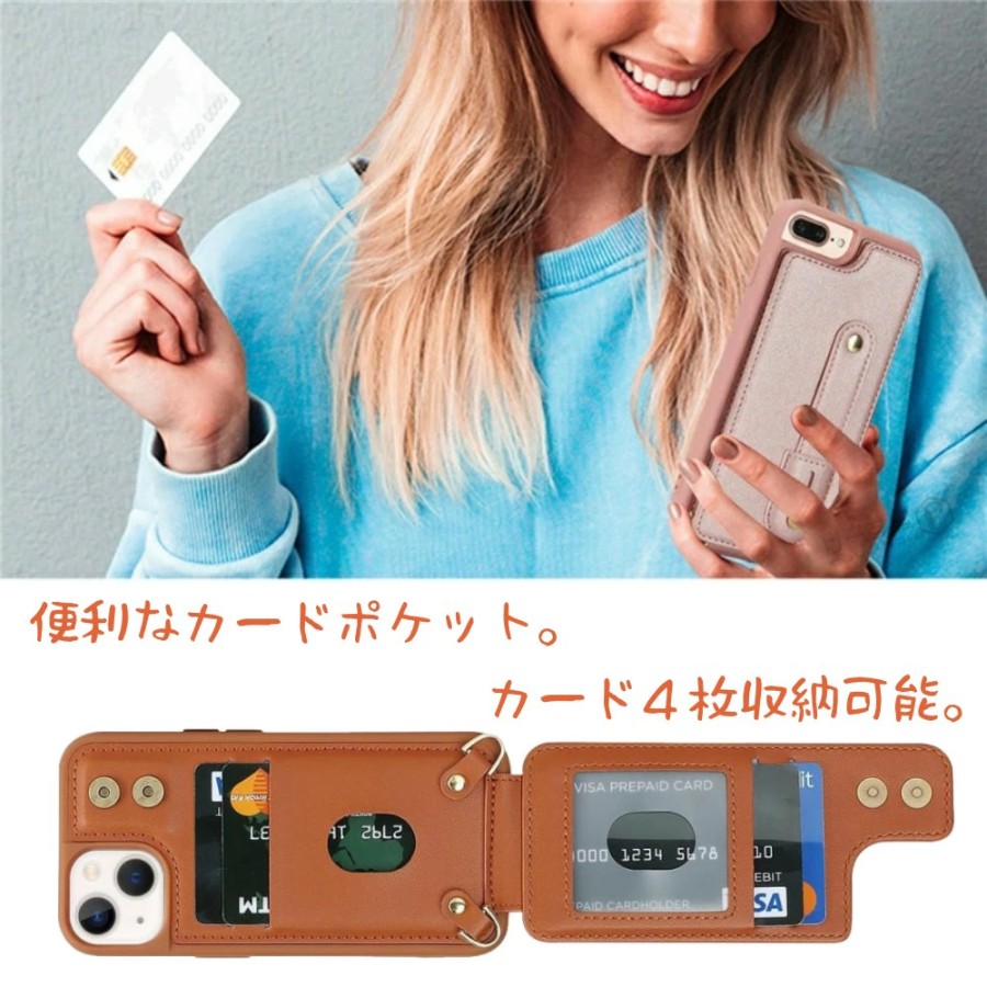 | 商品名 | カード収納 ベルトスタンド iPhoneケース iPhone15/14/13シリーズ対応 カードポケット付き 落下防止ベルト ハンドストラップ スタンド機能 耐衝撃 PUレザー スマホケース |