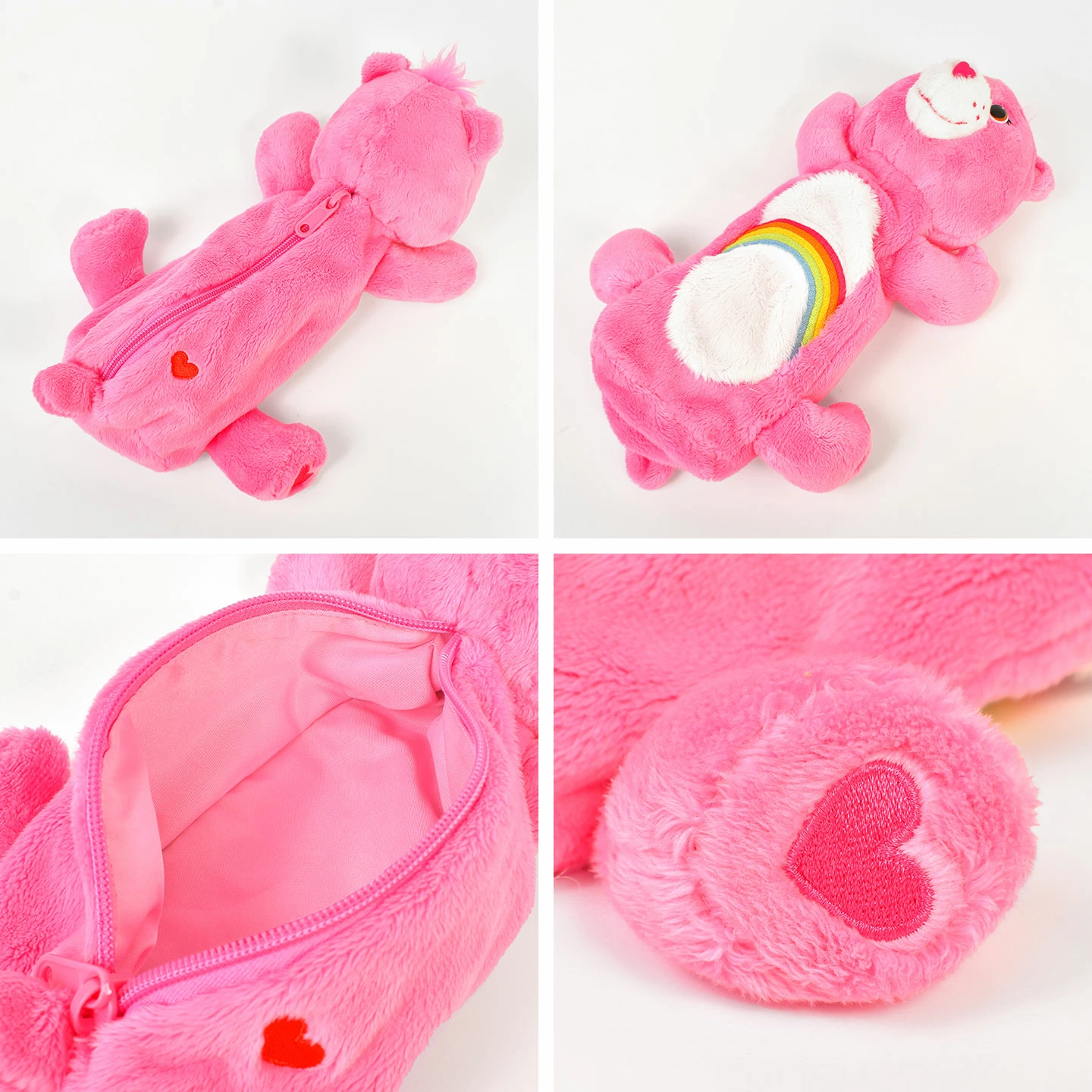 【ロングポーチ】ぬいぐるみペンケースにケアベアが登場!ふわふわな触り心地のぬいぐるみ生地を使用して存在感抜群。おなかにはそれぞれかわいい刺繍が入っています♪15cm定規などの文房具も入るサイズ感で、ペンケースや小物入れにぴったりです。
