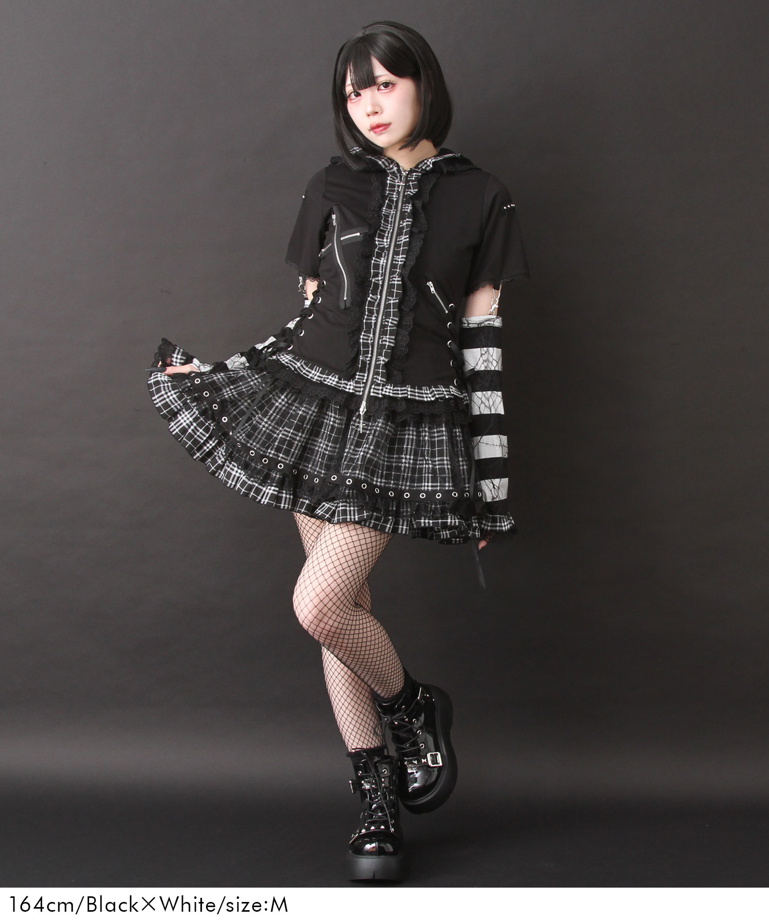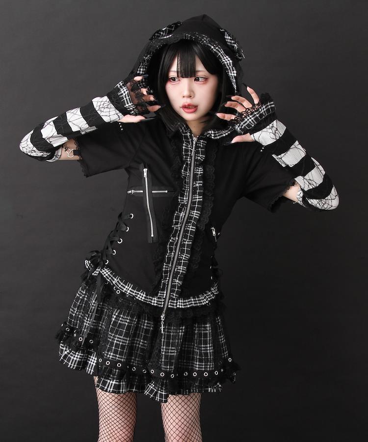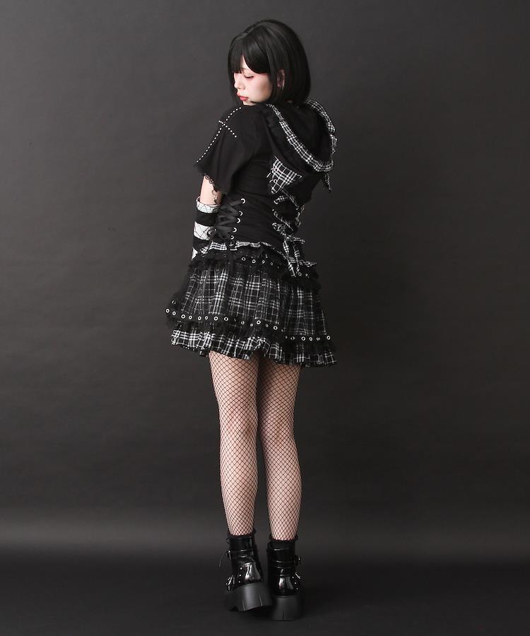 同じチェック生地使用していた十字架クモレースチェックティアード風スカートと合わせるのがオススメ