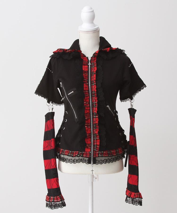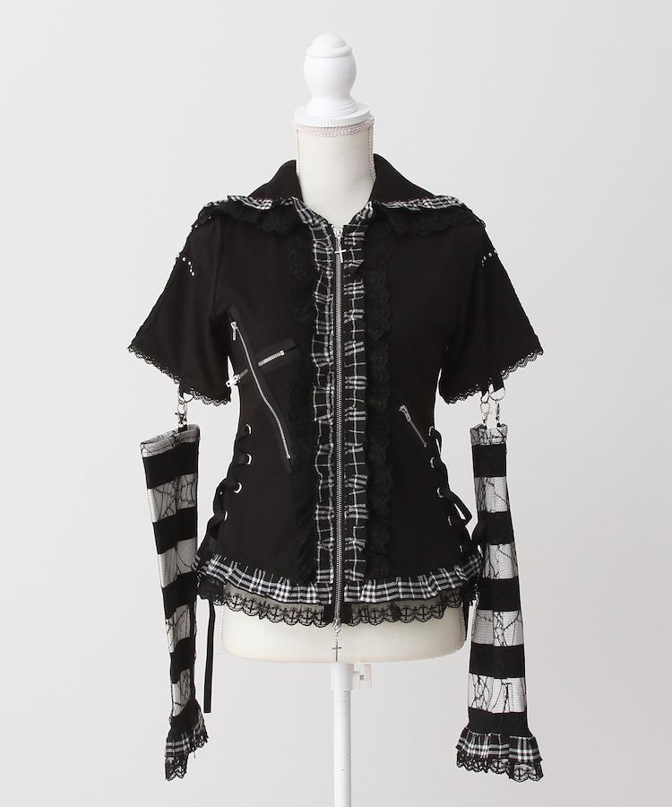アームカバーはストライプと蜘蛛レースになってて、カニカンで取り外し可能の仕様