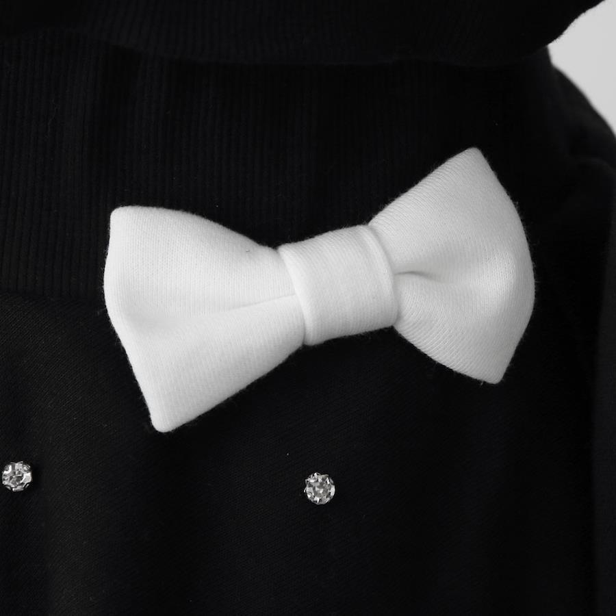 袖とウエストの配色リボンがさりげなく甘さをプラスしてくれます。