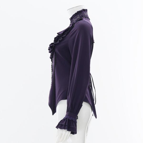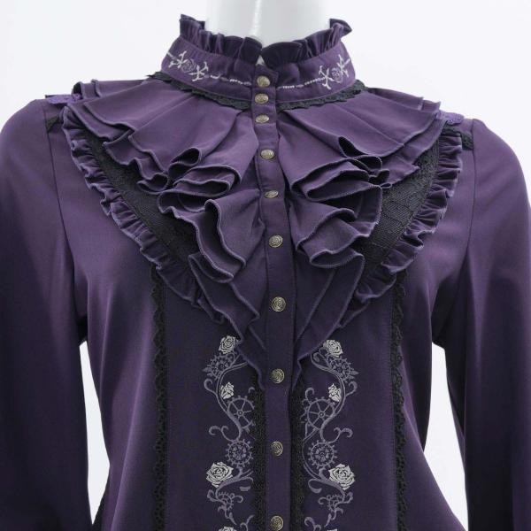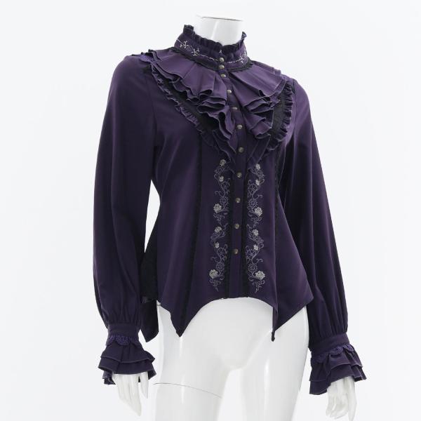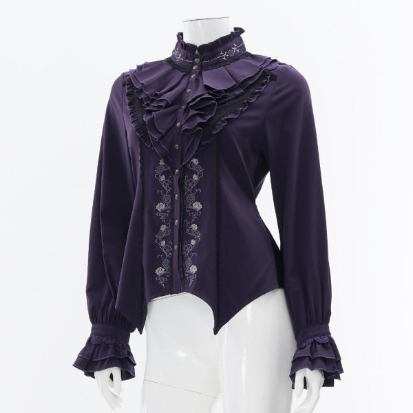 キュート&エレガントな薔薇刺繍入りフリルブラウス。