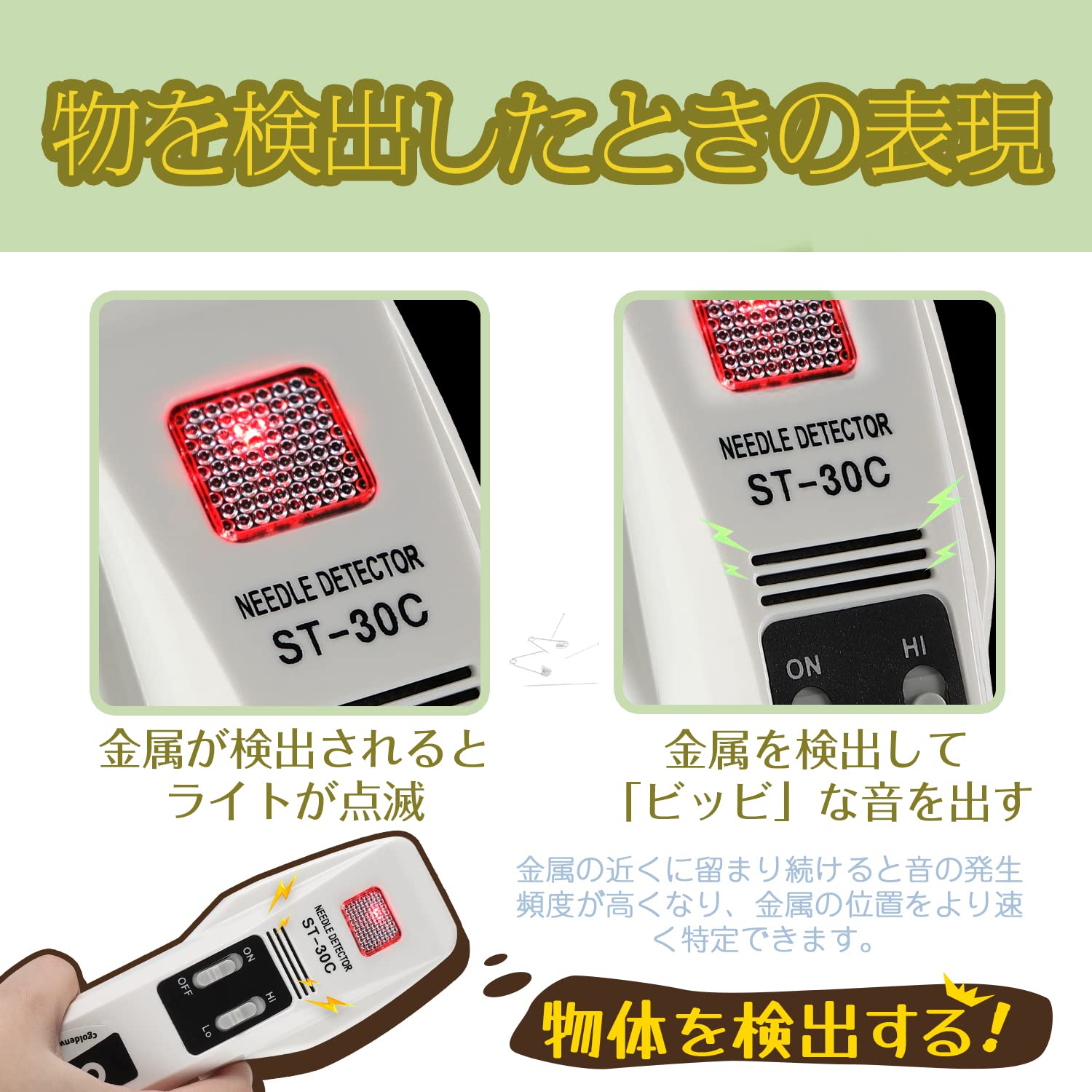 ●【Hi/Low2段階の感度切り替え】Hi時:鉄球φ0.8mmで探知面から5mm、Lo時:鉄球φ1.0㎜で探知面から5mm●【ランプ・電子ブザー同時警報】混入した針、折れ針、鉄片等を検知した後、ランプ・電子ブザー同時に警報します。●【高検出感度】磁気誘導方式を採用、検出感度が高くて、金属体の有無とその位置がわかります。●【連続作業可能】長時間連続的に検出でき、過熱過負荷になりません●【バッテリーセーブ】待機中はバッテリーが自動的にセーブモードに切り替わりますので、バッテリーの消耗を抑えられます。