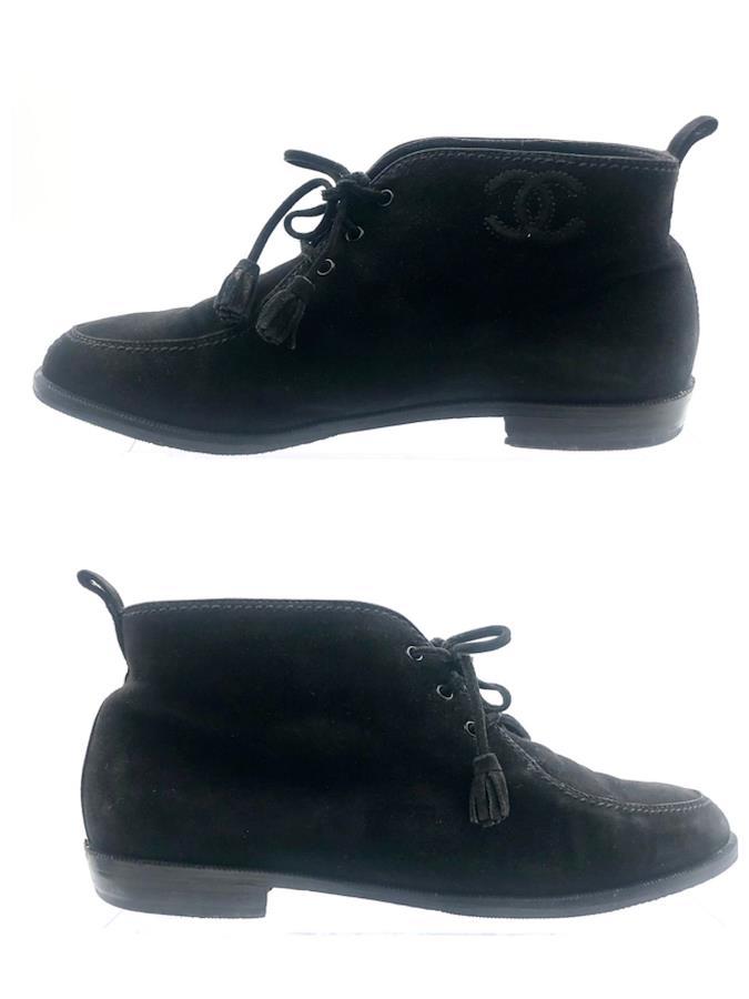 ■商品概要CHANEL シャネルココマークスエードチャカブーツ ショートブーツ37.5(24cm程度)レザー 本革ブラックイタリア製保存袋ありレディースラグジュアリー 高級 ハイブランド