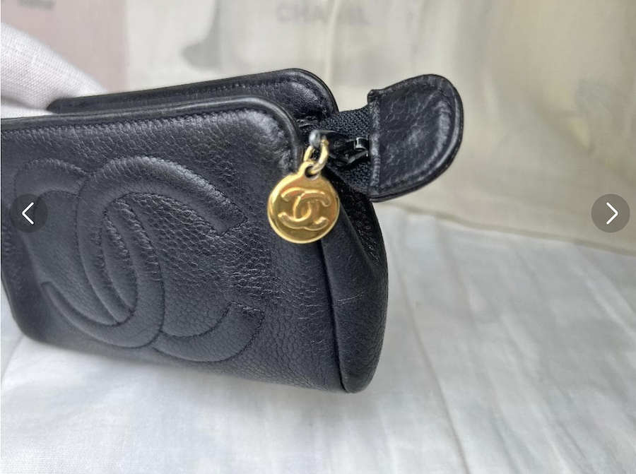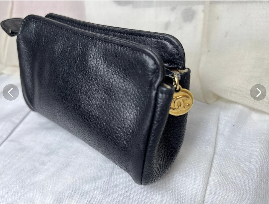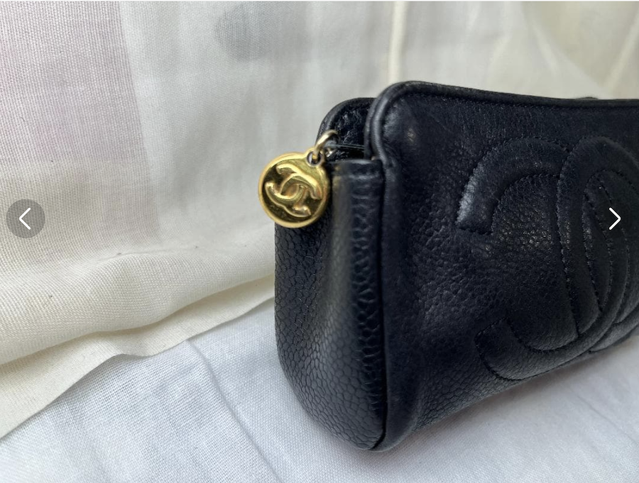 上質なキャビアスキンを使用したCHANELのミニポーチ。