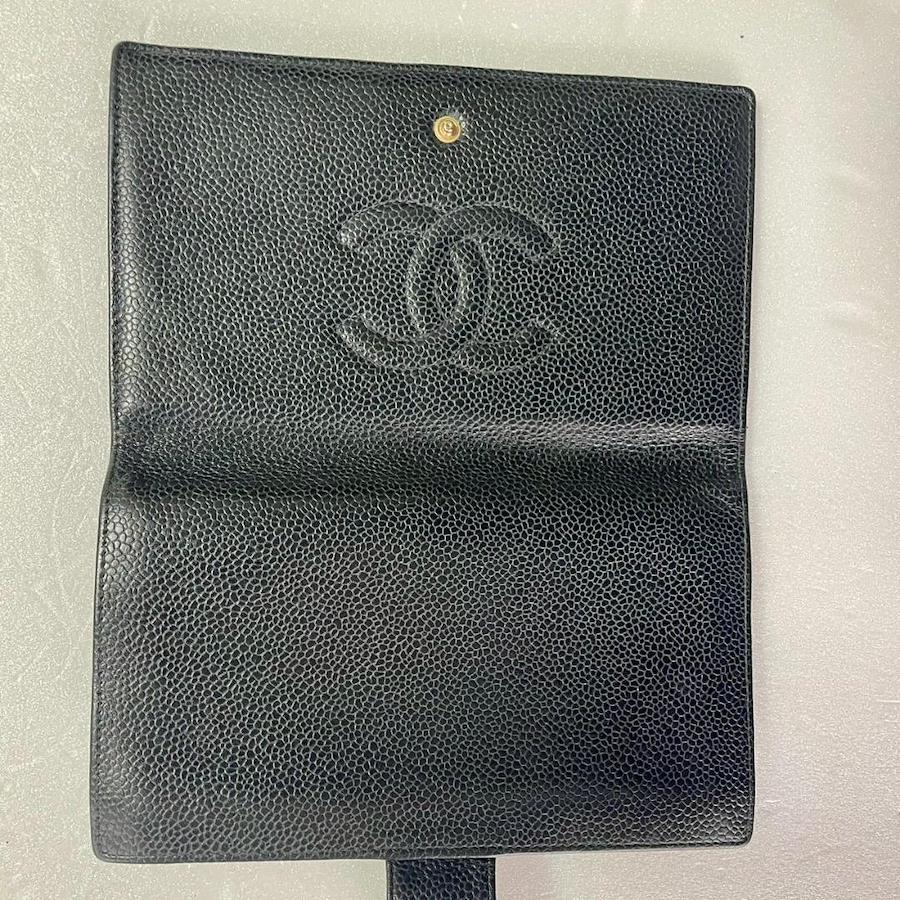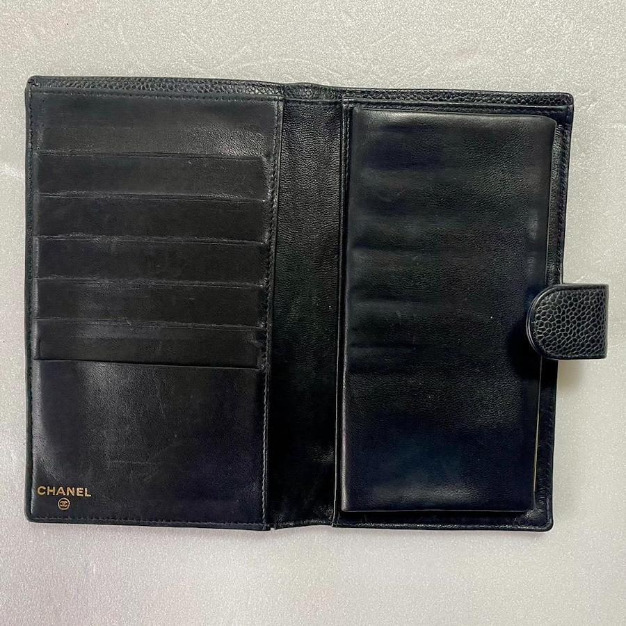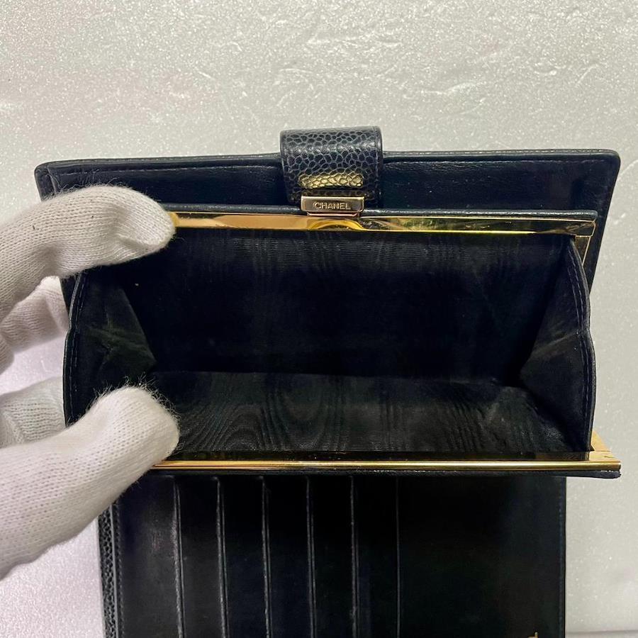 - ブランド: CHANEL- 色: ブラック- 素材: レザー- デザイン: 二つ折り財布- 内部ポケット: カードスロットあり- ロゴ: CHANELロゴあり
