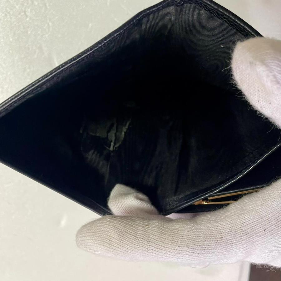 ☆こちらの商品はUSED品ですので新品や未使用品をお求めの方はご遠慮ください。高級感あふれるブラックレザーの二つ折り財布。