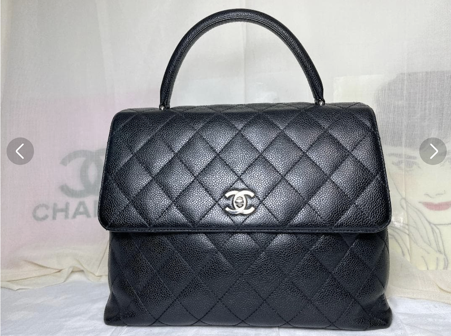 シャネルの中でも高い人気を誇る「キャビアスキン・マトラッセ」のトップハンドルバッグ。