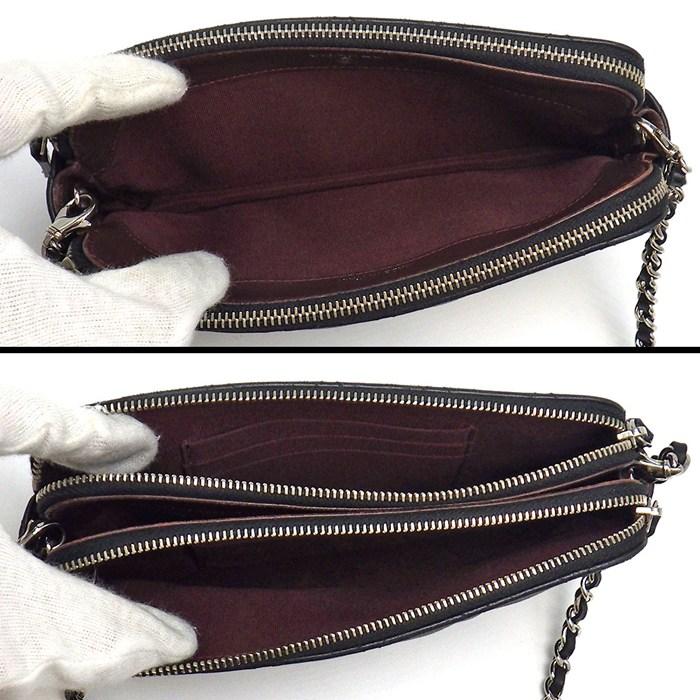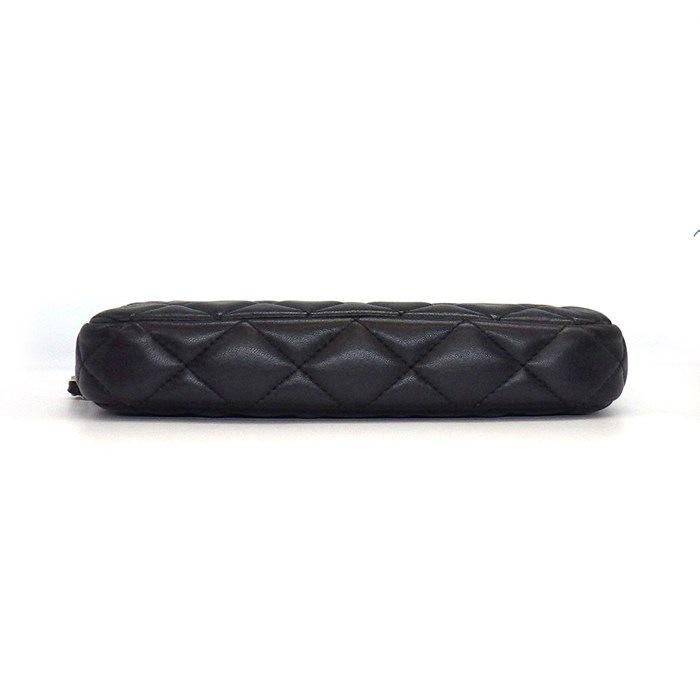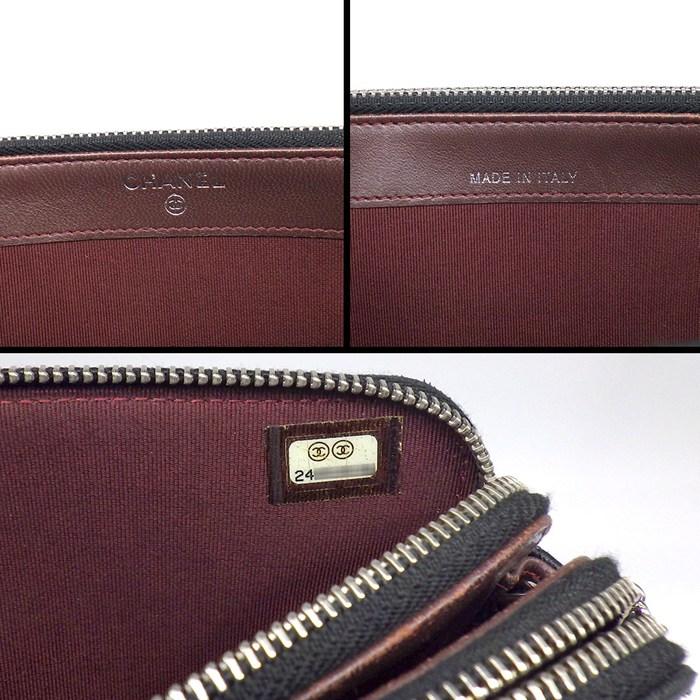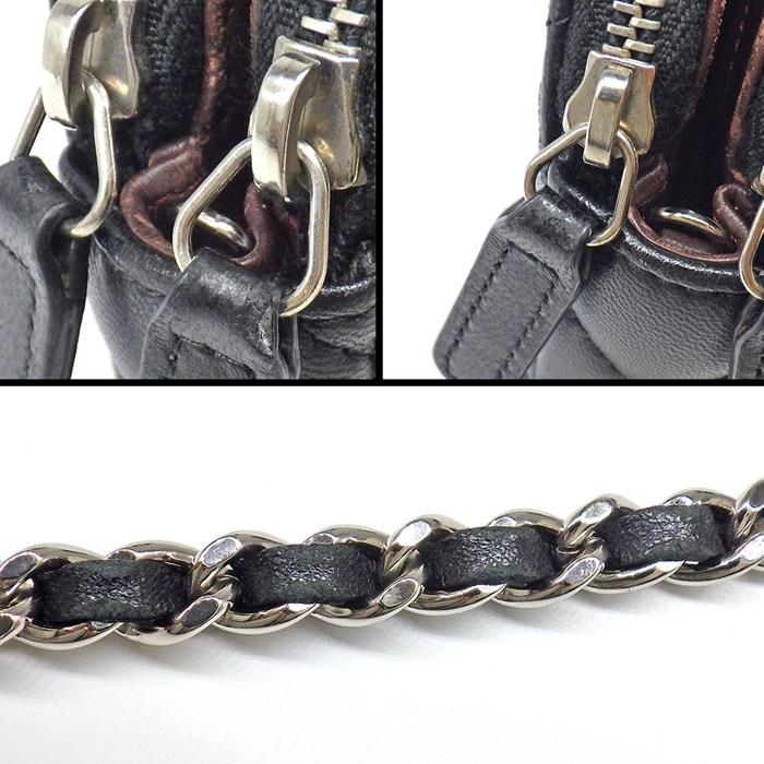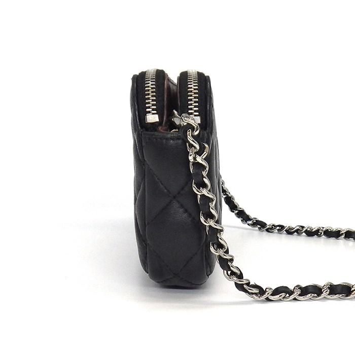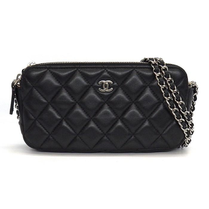 ■商品名CHANEL チェーンウォレット A82527 ダブルファスナー ココマーク マトラッセ ブラック ラムスキン シルバー金具 【中古】