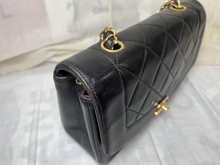 バッグ自体の型崩れは少なく、フォルムも美しく保たれています。シャネルのダイアナラインは世界的に人気が高く、ヴィンテージ市場でも枯渇傾向。この状態で残っているものは非常に希少です。