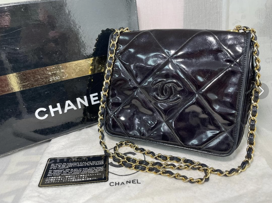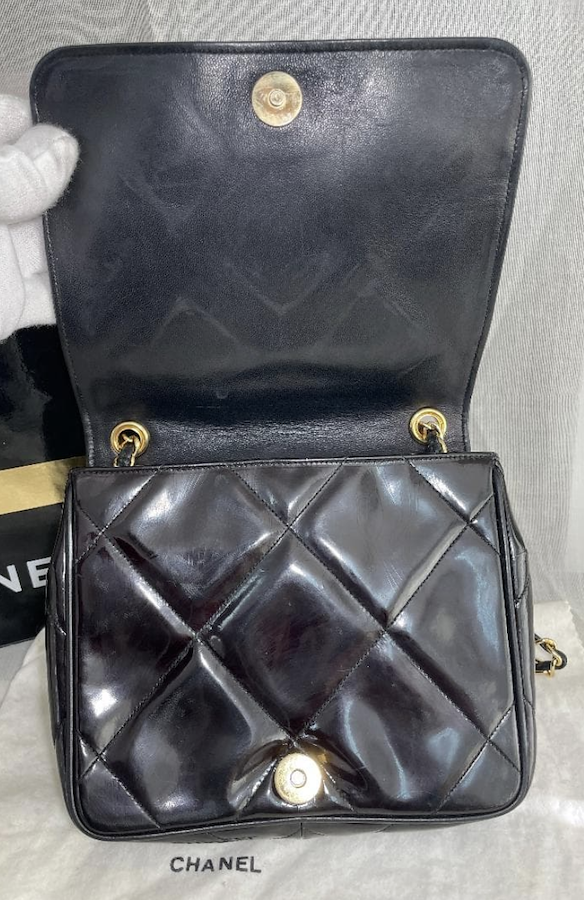 シャネルらしいマトラッセステッチと、艶やかなエナメルが魅力のチェーンショルダーバッグ。上品でコンパクトなフォルムは、日常からフォーマルまで幅広くお使いいただけます。タイムレスなデザインと高級感を兼ね備えたヴィンテージ品です。