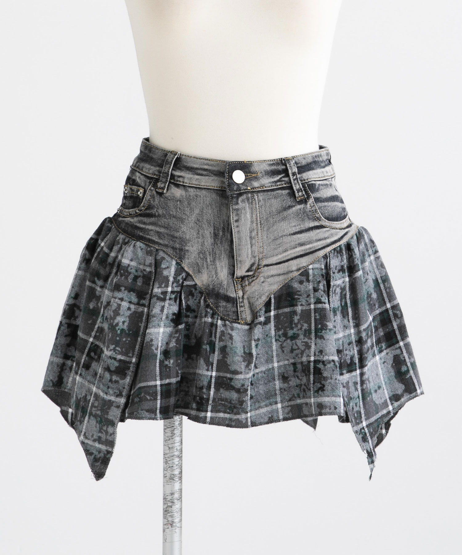 デニム×チェック柄の最強MIX!スカート見えなのに動きやすい万能アイテム
