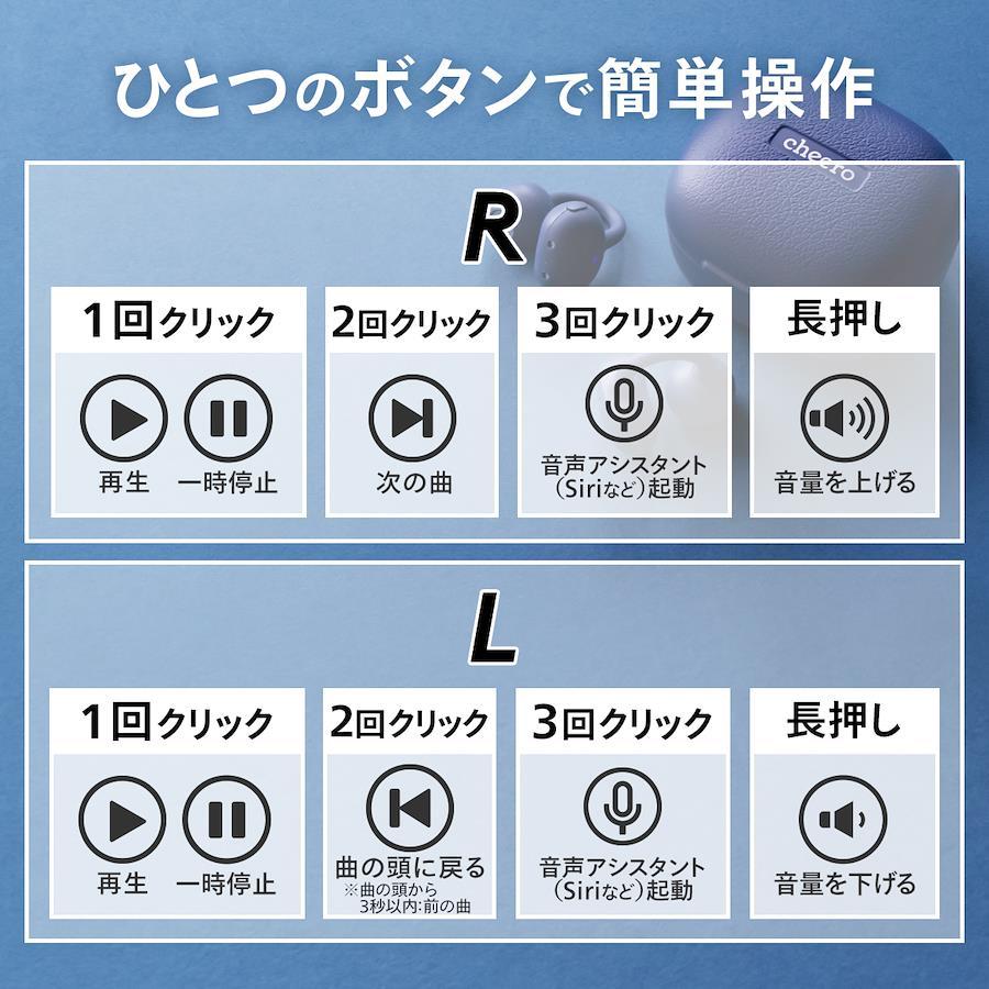 触れても音楽が止まらない、安心の物理ボタン操作ボタンに意図せず触れてしまっても誤操作が起きないよう、タッチセンサー式ではなく物理ボタンを採用。音楽や通話をストレスなく楽しめます。