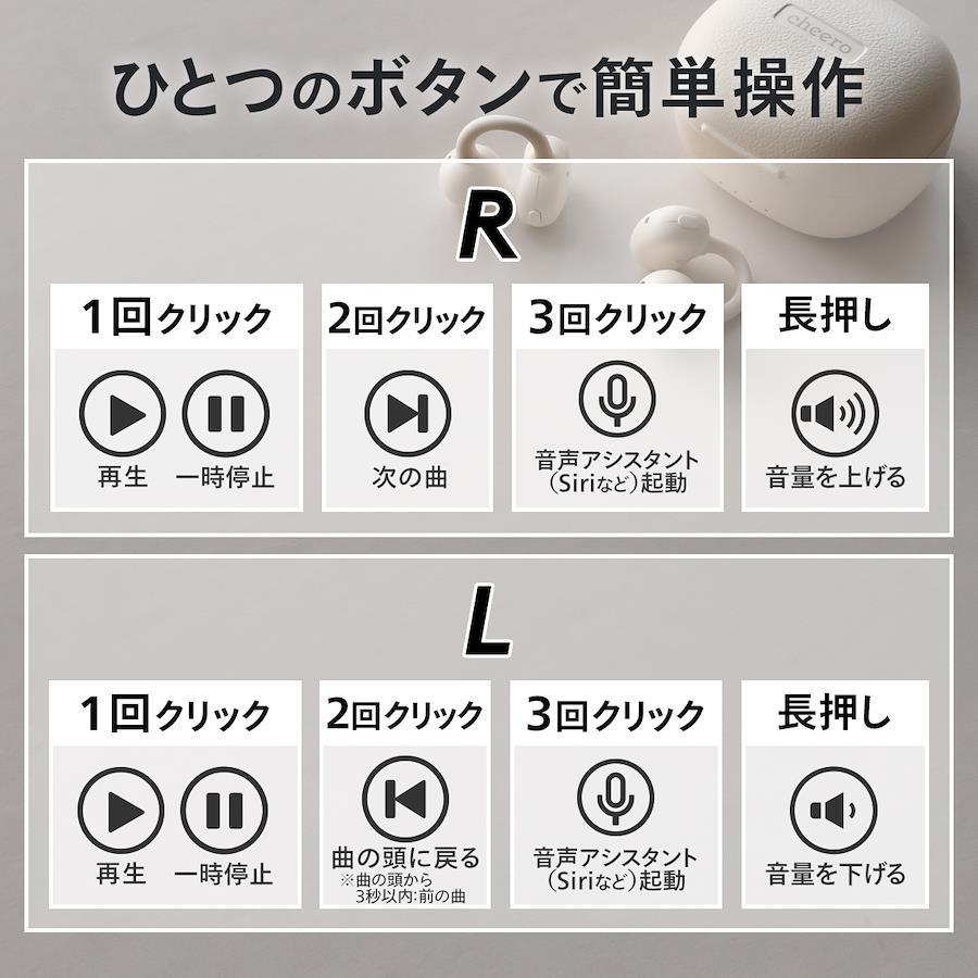 耳をふさがない、快適なオープン設計耳イヤーカフのように装着できるオープン型ワイヤレスイヤホン。圧迫感がなく、長時間の使用でも快適です。周囲の音を自然に取り込むことができ、イヤホンをつけたままでも会話や環境音をしっかりキャッチします。